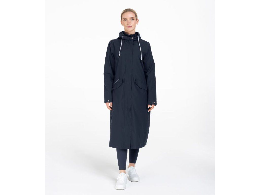 Funkční jezdecký plášť do deště s voděodolnou a prodyšnou úpravou. Poskytuje maximální ochranu před nepříznivým počasím a zároveň komfort při jízdě na koni.