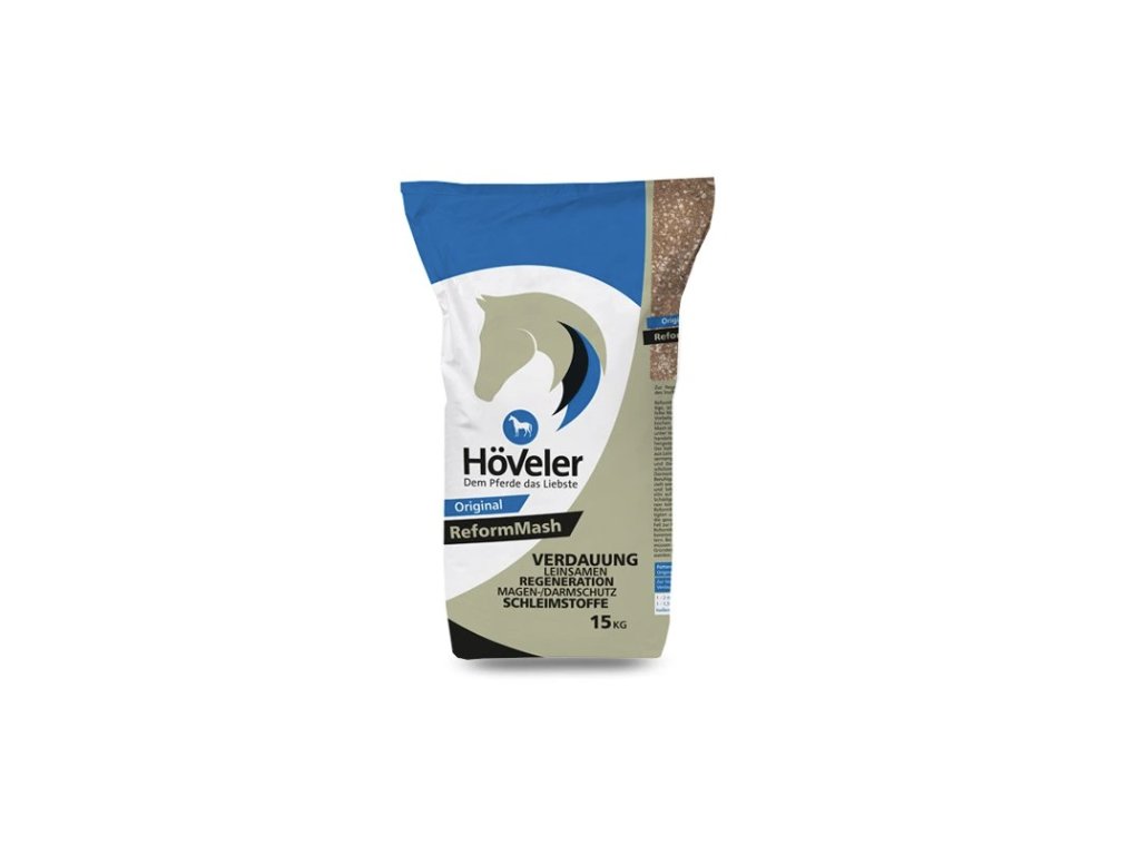 Höveler Reform Mash 15 kg je doplňkové krmivo ve formě mash navržené pro všechny koně jako výživná svačina s dobrým efektem na trávení, regeneraci i metabolismus. Tento mash nevyžaduje vaření — stačí ho zalít teplou nebo horkou vodou a nechat nasáknout.