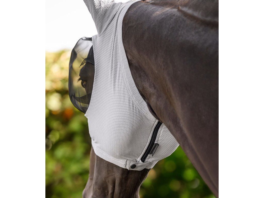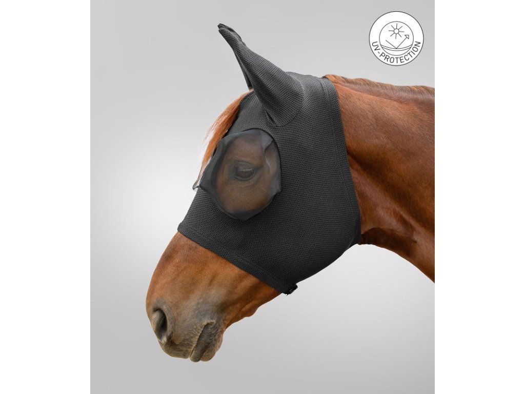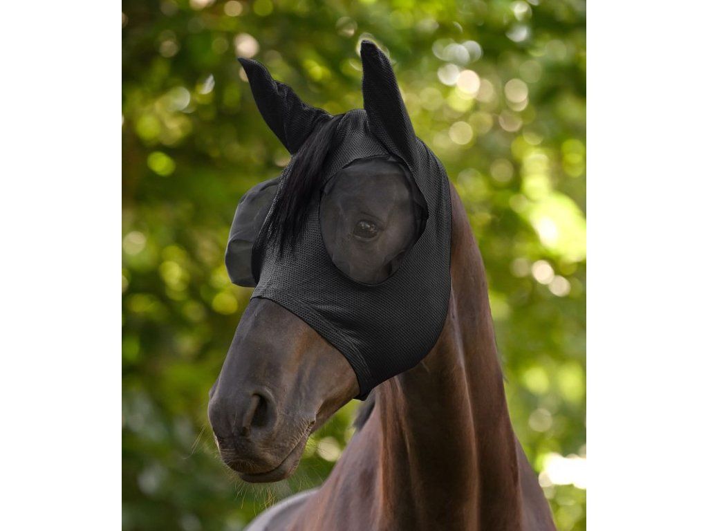Lehká a prodyšná maska proti hmyzu pro koně z mesh materiálu. Poskytuje spolehlivou ochranu před mouchami a hmyzem, zároveň zajišťuje maximální komfort a volnost pohledu.