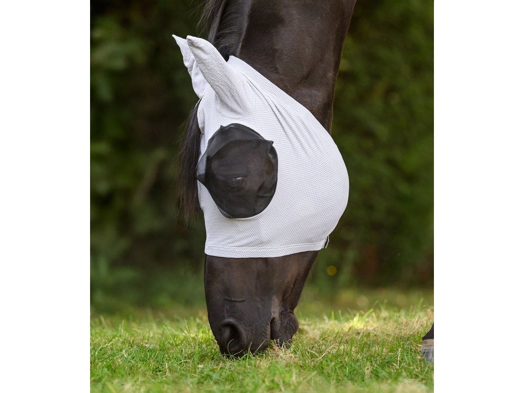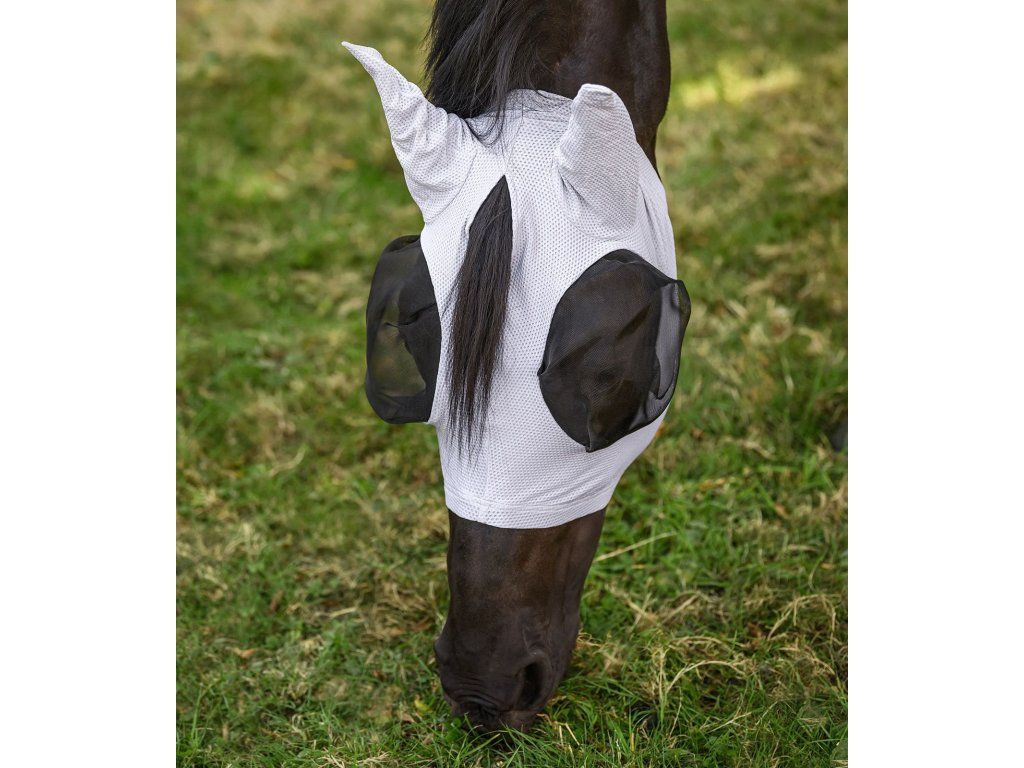 Maska účinně chrání oči koně před mouchami a dalším hmyzem, přičemž zachovává dostatek prostoru kolem očí, aby nedocházelo k podráždění ani omezení výhledu.