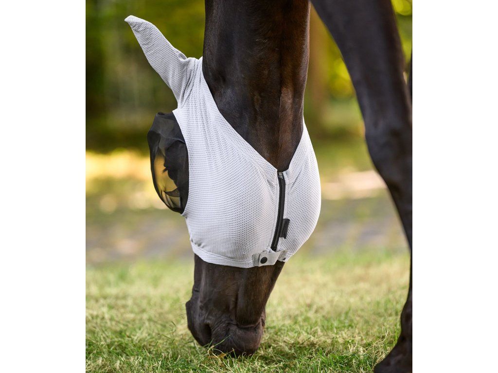 Ideální volba pro horké dny – maska je lehká, prodyšná a pohodlná, takže kůň zůstane chráněný bez zbytečného přehřívání