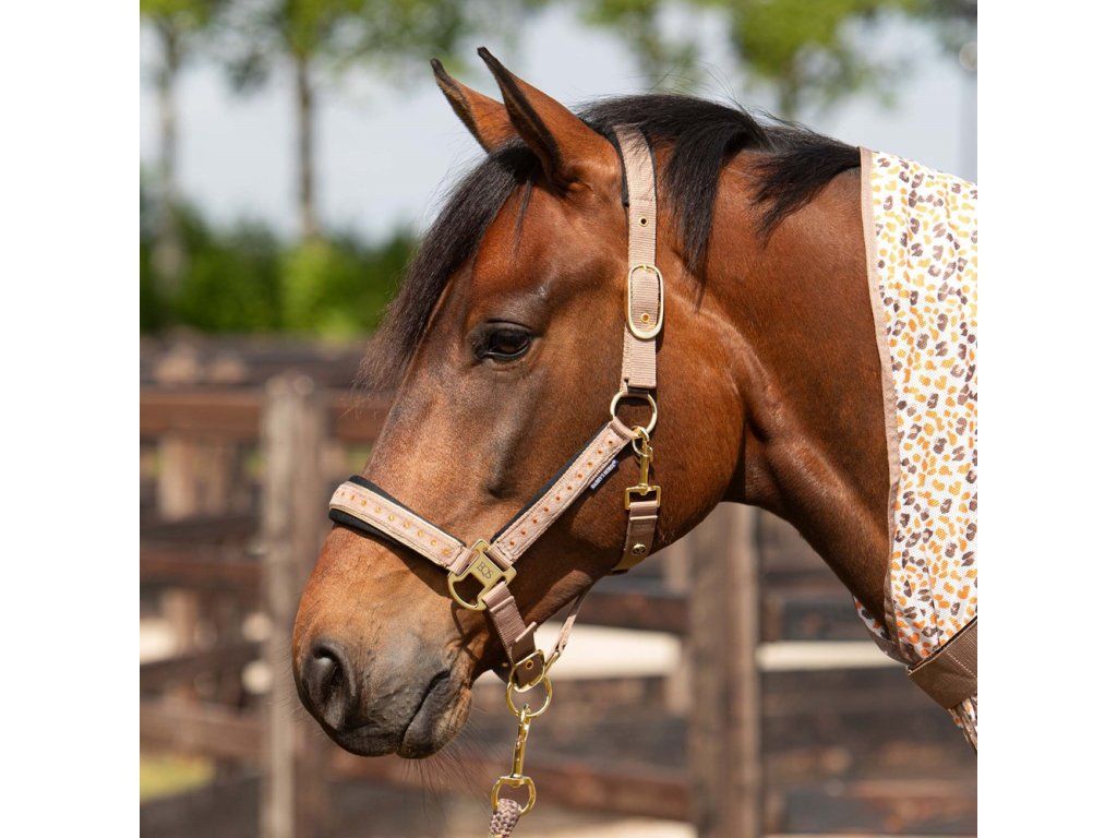 Ohlávka je navržena v moderním stylu s důrazem na detail – třpytivé krystaly na nánosníku a lícnicích dodávají produktu výrazný a reprezentativní vzhled.