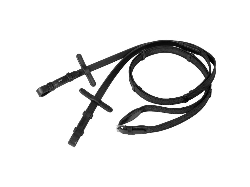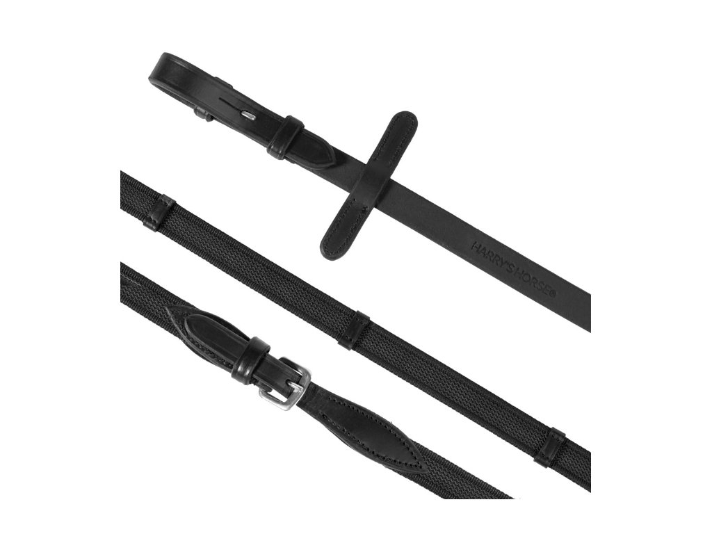 Harry’s Horse Supergrip Stops otěže kombinují protiskluzový materiál s koženými stopami (stops) pro zpevněný úchop.