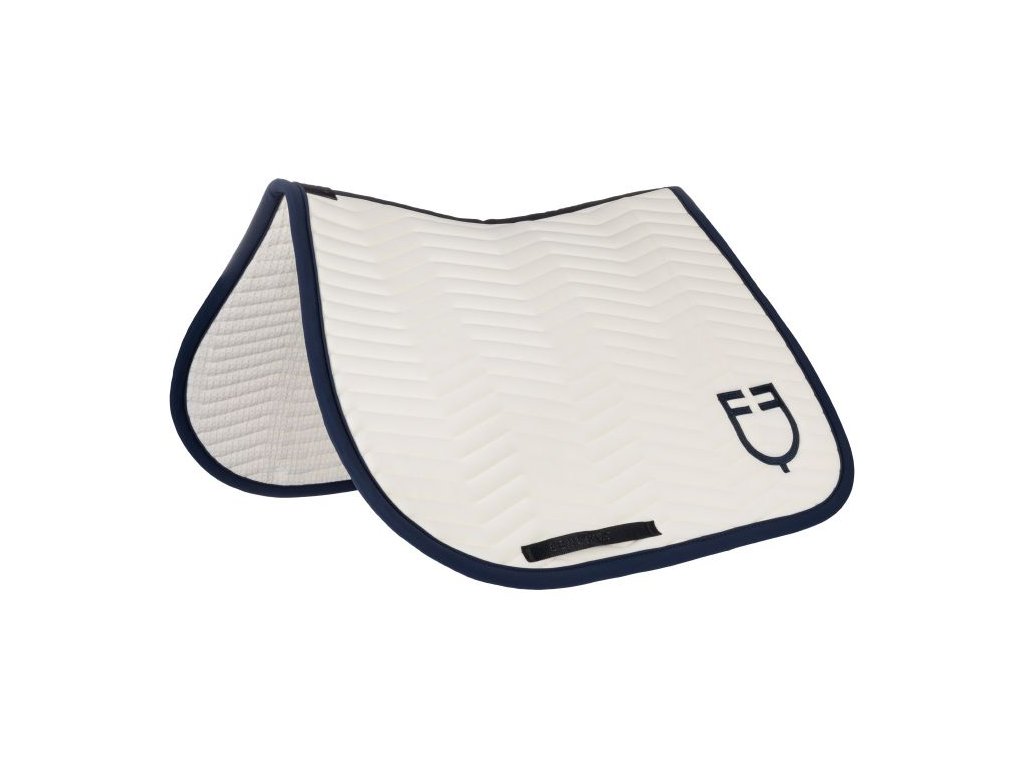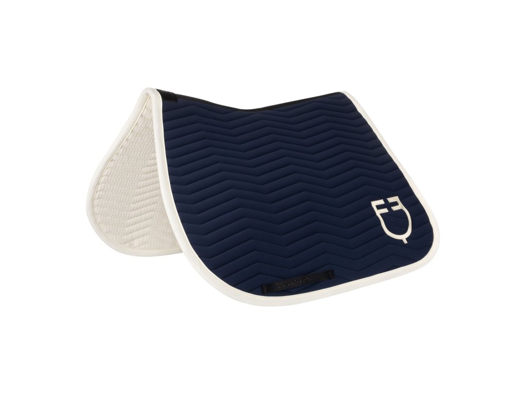 Skoková dečka Wave – technický lehký materiál, prodyšný a rychleschnoucí. Anatomický tvar, “vlnité” prošití (wave quilting) pro elegantní vzhled a lepší rozložení tlaku pod sedlem.