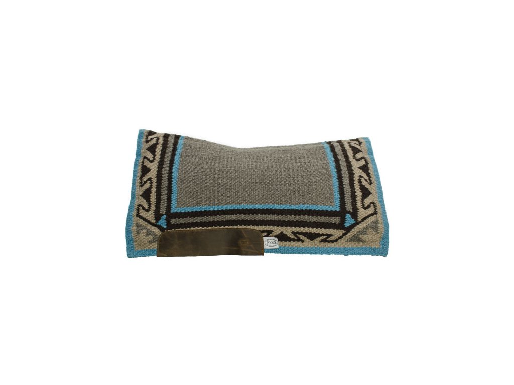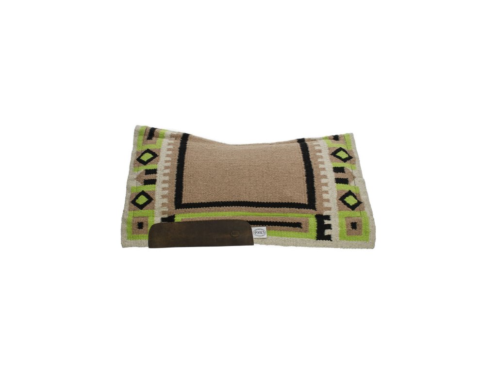 - Show polstrovaná plstí a vrstvou tlumícího materiálu, na vrchu vlněná tkanina Navajo a vlněný fleece v kontaktu s koněm, kožené výztuhy