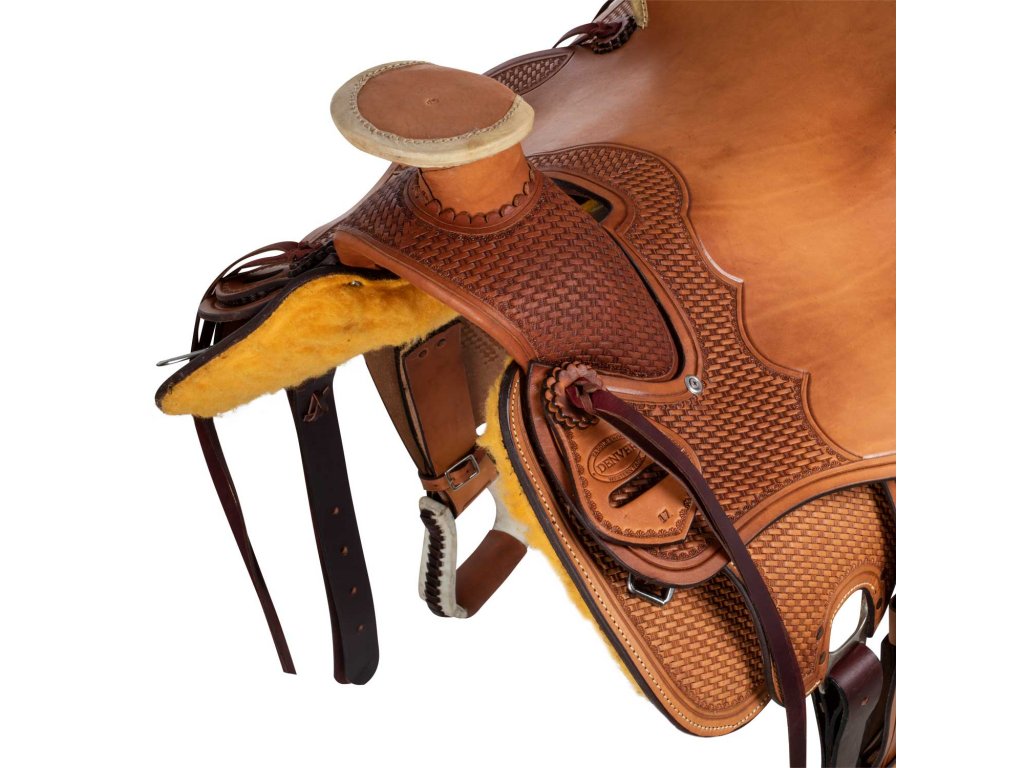 - Westernové pracovní sedlo z vysoce kvalitní měkké kůže, hluboký sed, zadní rozsocha pošita rawhidem