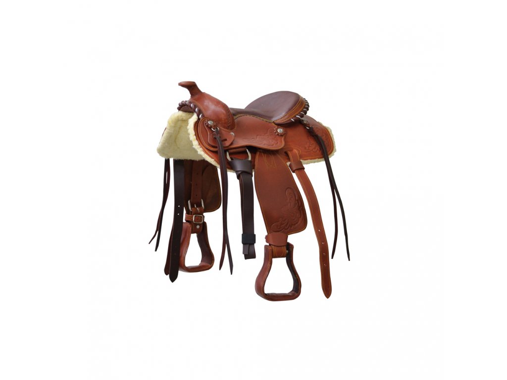 I kovbojský potěr si zaslouží jezdit pohodlně a v profesionálních sedlech. Proto tu máme toto luxusní sedlo na pony z USA, které patří ke špičce a ještě je k mání za dobrou cenu. Zdobená kůže a posedlí z hladké kůže, jako u profesionálních sedel.