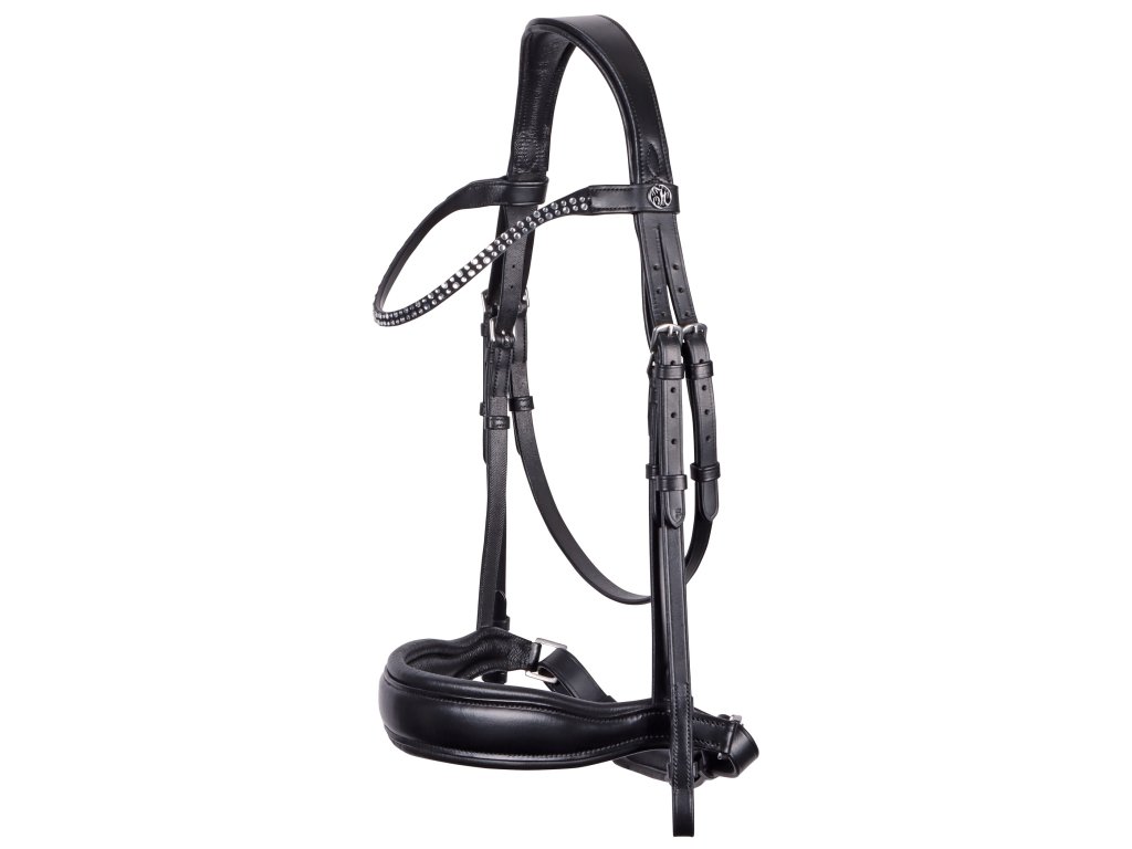 Kvalitní kožená uzdečka s extra měkkou anatomicky tvarovanou hlavovou částí a anatomickým nánosníkem bez podbradního řemínku (flash strap). Uzdečka je doplněna o krystaly na čelence, skryté zapínání na lícnicích a otěže. Navržena pro maximální pohodlí koně a elegantní vzhled.