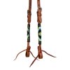 - Uzdečka má ozdoby z korálků, které jí dodávají jedinečnou eleganci.